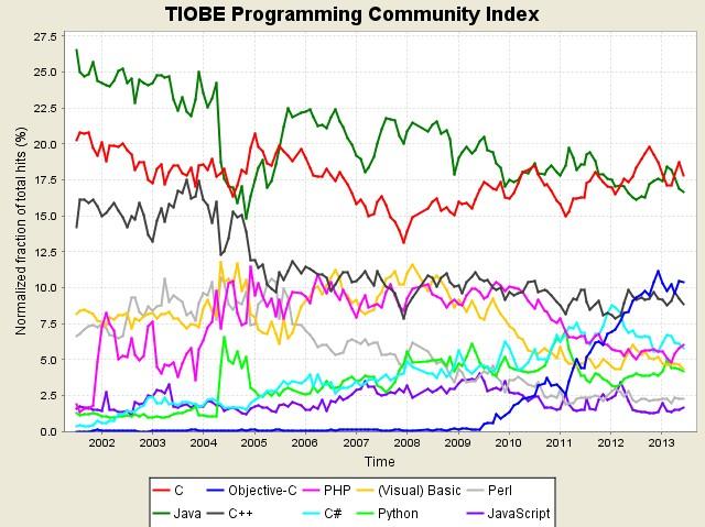 前10名編程語言走勢(shì)圖